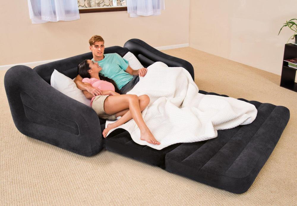 - The Intex Pull-Out Sofa deflates compactly for storage or travel
